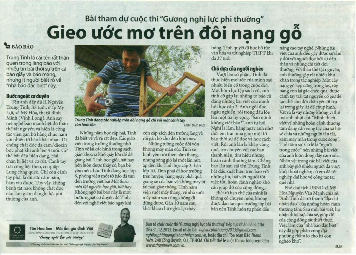 Nguyễn Trung Tính - Gieo ước mơ trên đôi nạng gỗ