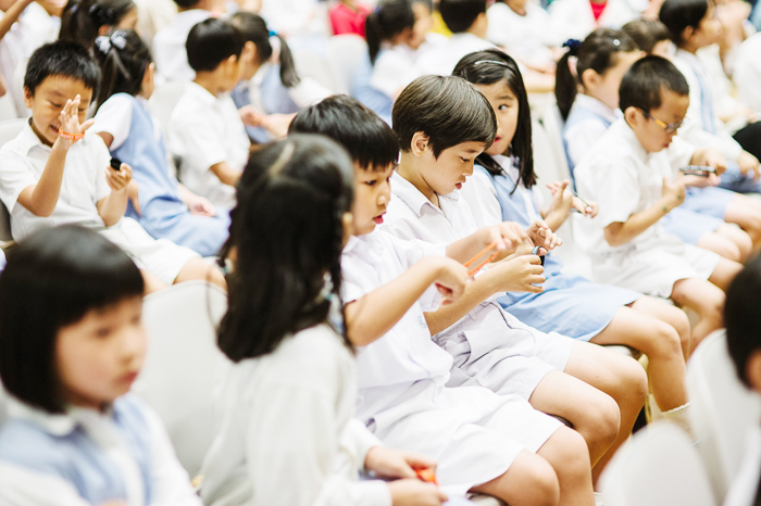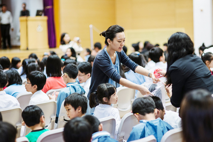 Với nỗ lực hiện tại để chấm dứt tình trạng bắt nạt, chúng tôi đã phát dây đeo tay cho các em như là biểu tượng cho sự đoàn kết để cùng chống lại sự bắt nạt và trêu chọc.